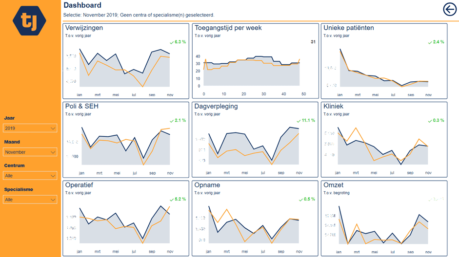 Komend jaar zal gebruikt worden om de dashboardstructuur verder uit te rollen. “We zetten het in als platform voor het management bij hun maandelijkse gesprekken over de bedrijfsvoering”, legt Tako uit. Daarnaast zal een eerste stap gezet worden in het maken van meer specifieke dashboards en rapportages die inspelen op (tijdelijke) ontwikkelingen en waarbij behoefte is aan monitoring en data. Een voorbeeld is het doelmatiger maken van de zorg. Het verplaatsen van bepaalde operaties van klinisch naar dagverpleging, of het verschuiven van zorg tussen ziekenhuizen of naar de eerstelijn. Dat zijn ontwikkelingen die je op de voet wilt kunnen volgen. Ook op het gebied van capaciteitsplanning is er behoefte aan meer inzicht en nieuwe rapportages.